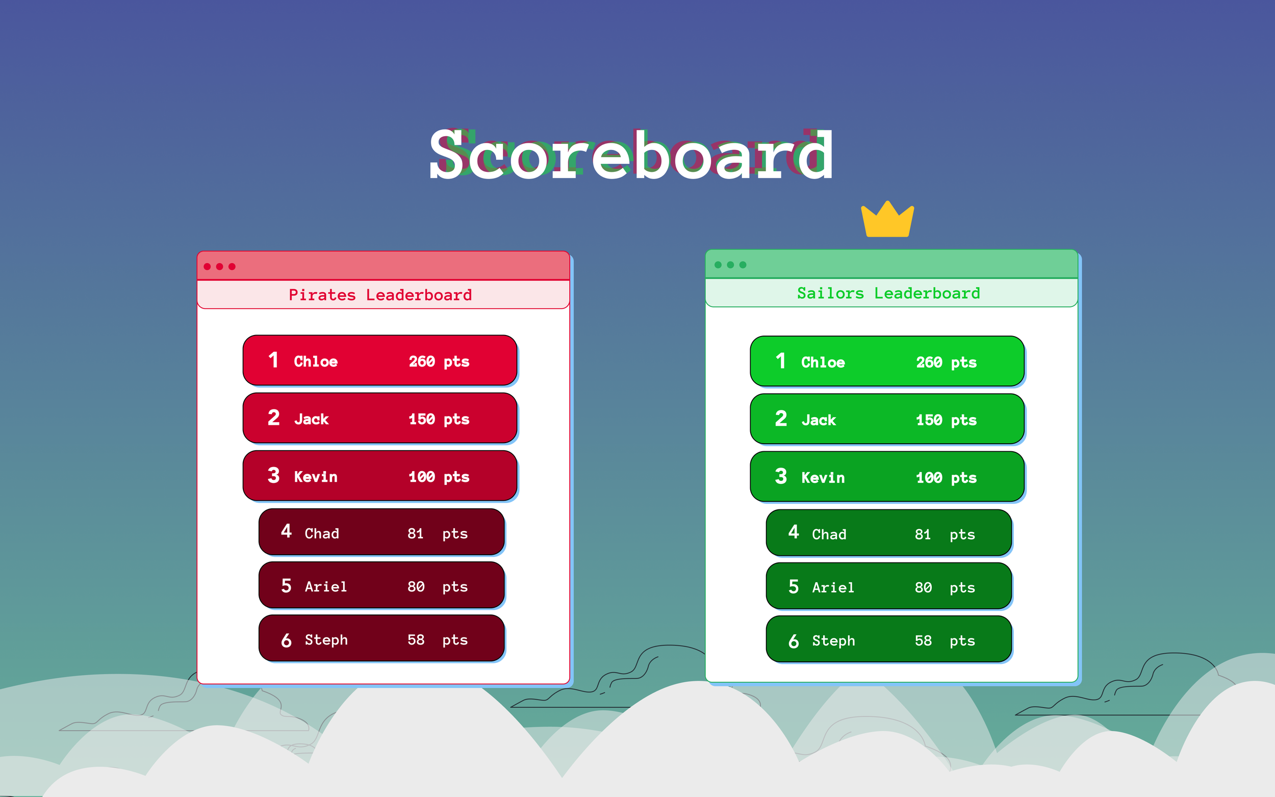 We wanted to provide users with a sense of competition and achievement, as well as a clear indication of their performance in the game. The scoreboard feature displays points earned by each team at the end of each mini-game, and highlights the winning team. This addition aligns with our design goal of creating an engaging and interactive game that motivates students to actively participate and learn about digital literacy concepts.